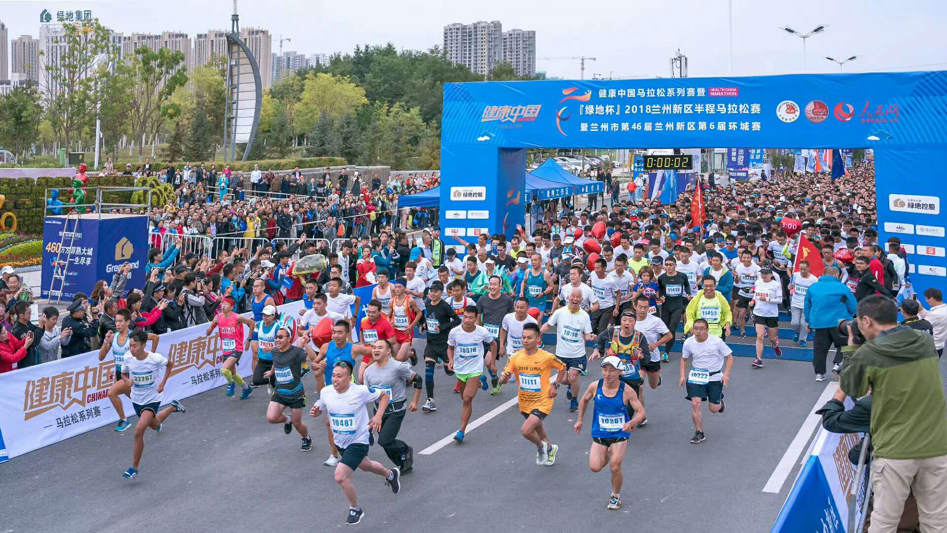 2018年9月9日8時30分“綠地杯”2018蘭州新區(qū)半程馬拉松賽暨健康中國馬拉松系列賽在蘭州新區(qū)棲霞湖畔鳴槍開賽。5000名參賽選手從美麗的棲霞湖出發(fā),在途中領(lǐng)略新區(qū)日新月異的變化。