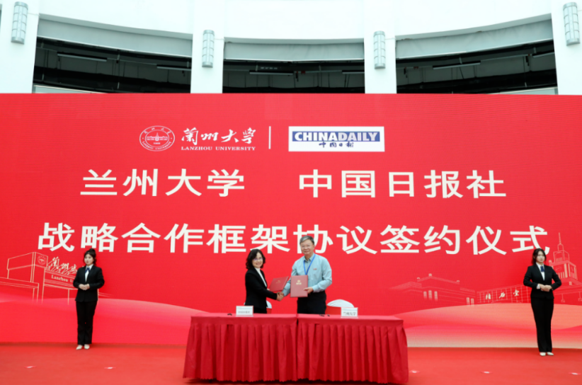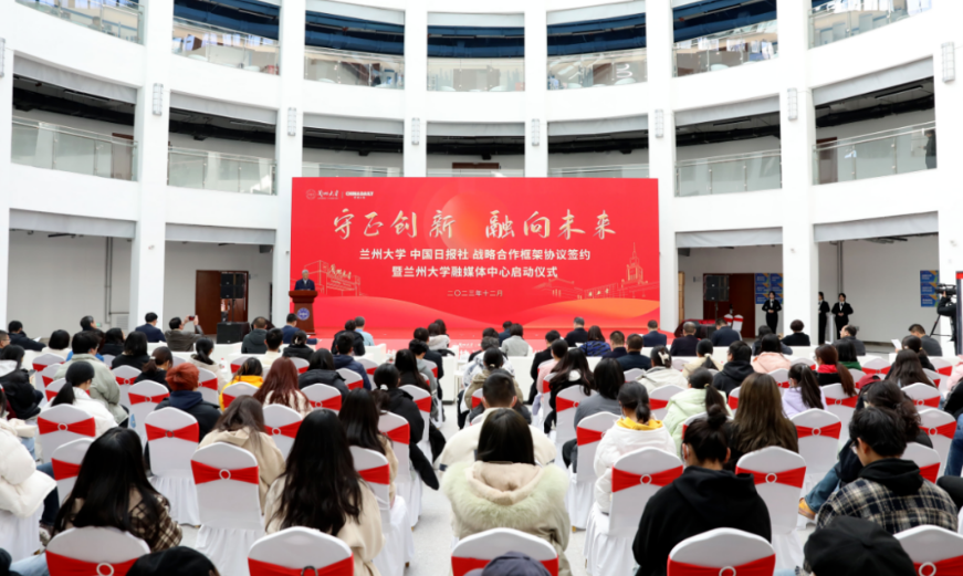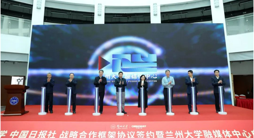 12月7日下午,蘭州大學(xué) 中國(guó)日?qǐng)?bào)社戰(zhàn)略合作框架協(xié)議簽約暨蘭州大學(xué)融媒體中心啟動(dòng)儀式在蘭州大學(xué)榆中校區(qū)舉行。教育部宣傳教育中心副主任余冠仕,中國(guó)日?qǐng)?bào)社副總編輯劉偉玲,蘭州大學(xué)黨委書記馬小潔,中國(guó)科學(xué)院院士、校長(zhǎng)嚴(yán)純?nèi)A,甘肅省委宣傳部副部長(zhǎng)、省政府新聞辦主任張斌強(qiáng),蘭州大學(xué)黨委副書記曹愛輝,蘭州大學(xué)黨委常委、宣傳部部長(zhǎng)安俊堂出席活動(dòng)。活動(dòng)由曹愛輝主持。