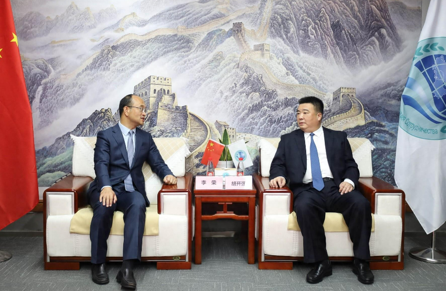 上合消息:上海合作組織國家多功能經(jīng)貿(mào)平臺總干事、重慶市政協(xié)港澳臺僑和外事委員會(huì)副主任胡開強(qiáng)歡迎李榮一行,張光福副秘書長陪同會(huì)見。