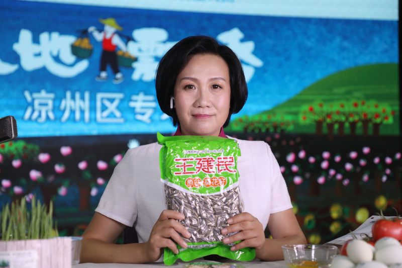 武威市涼州區(qū)區(qū)委常委、宣傳部部長(zhǎng)李曉瑛,攜養(yǎng)生保健醋、原味瓜子、烏骨雞蛋、刀削寬面、港燒牛肉、果木烤牛肉、豆干小零食、沙漠西紅柿等走進(jìn)直播間,并現(xiàn)場(chǎng)試吃刀削寬面。200斤特價(jià)刀削寬面一上架就被網(wǎng)友秒搶而空。