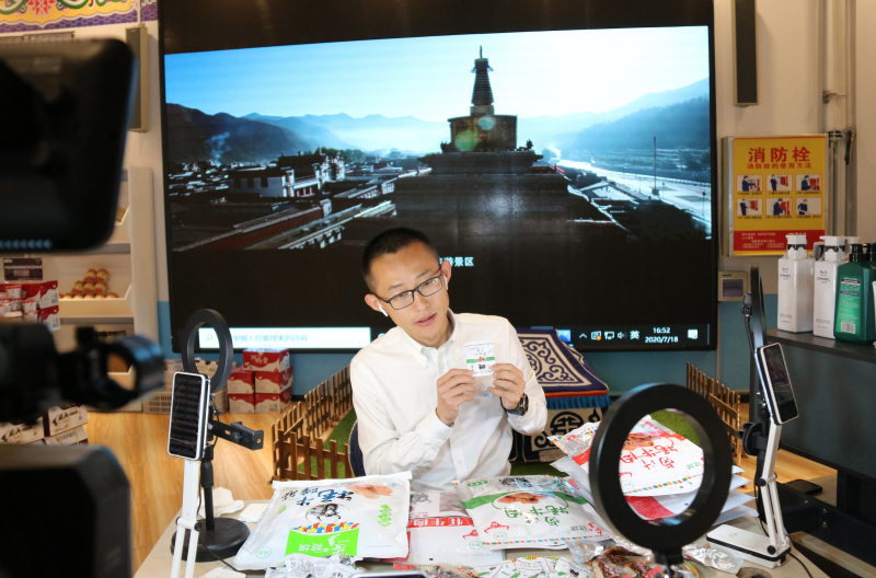 甘南州夏河縣縣委常委、副縣長(zhǎng)張健,在直播間向網(wǎng)友推介當(dāng)?shù)靥禺a(chǎn)手撕牦牛肉、鹵汁牦牛肉、牦牛肉條、牦牛蹄筋。專業(yè)的講解、綠色生態(tài)的生產(chǎn)加工流程,增加了粉絲對(duì)夏河“甘貨”的濃厚興致,短短幾分鐘,就售出牦牛系列產(chǎn)品100多單。