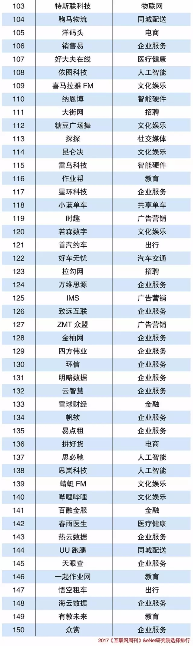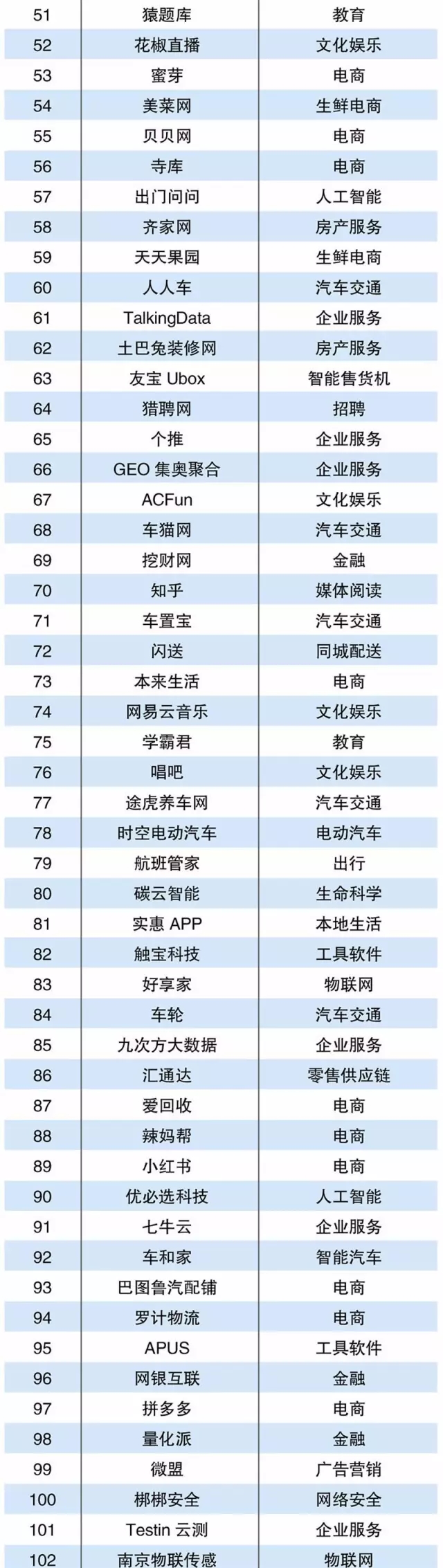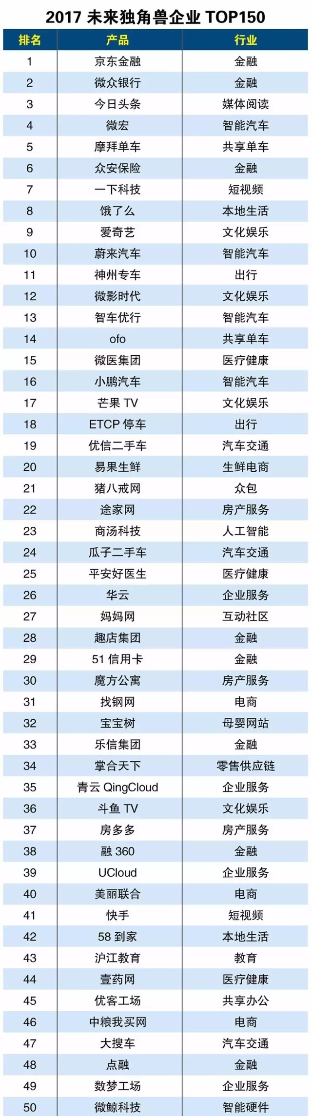 當(dāng)下,滴滴、美團(tuán)點(diǎn)評(píng)、陸金所、螞蟻金服已經(jīng)成為名副其實(shí)的獨(dú)角獸企業(yè),其估值皆達(dá)到百億美元。盡管他們?nèi)匀辉谝詮?qiáng)大的創(chuàng)新能力推動(dòng)發(fā)展,但是他們已然度過了探索與摸索的階段,已經(jīng)由加速跑轉(zhuǎn)換到途中跑,確立了成熟的商業(yè)體系與明顯的領(lǐng)導(dǎo)地位,在“未來獨(dú)角獸”的企業(yè)排行中,并沒有收錄此類企業(yè)。