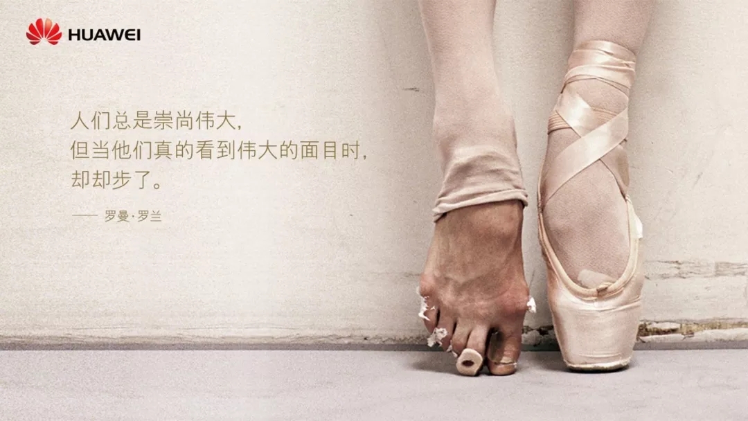 2018年,華為CFO孟晚舟遭到加拿大警方無(wú)故扣押,保釋后,她發(fā)的第一條朋友圈,是2015年的廣告“芭蕾腳”。