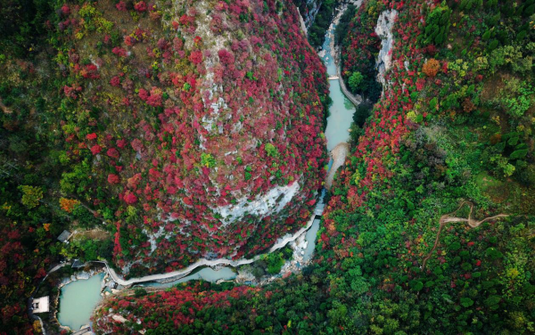 (圖為甘肅省隴南市成縣西狹頌秋景 新華社記者 陳斌 攝 )