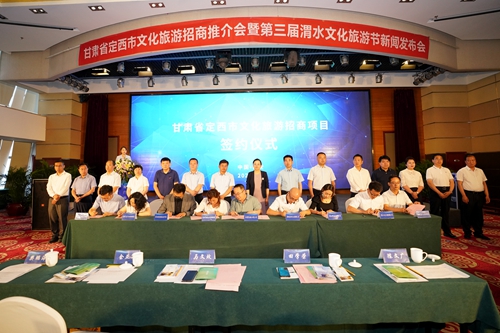 發(fā)布會上,定西市文體旅游局及七個縣區(qū)分別就當(dāng)?shù)匚幕糜钨Y源及招商引資項(xiàng)目進(jìn)行現(xiàn)場推介,并針對“到定西過一個只有20℃的夏天”和“第三屆渭水文化旅游節(jié)”回答了媒體提問。同時成功簽約了中和銀街民俗民謠酒吧街項(xiàng)目、通渭縣馬營鎮(zhèn)風(fēng)電旅游觀光綜合體建設(shè)項(xiàng)目、樺林生態(tài)旅游建設(shè)項(xiàng)目、岷縣梅川鎮(zhèn)休閑農(nóng)業(yè)與鄉(xiāng)村旅游建設(shè)項(xiàng)目、秀峰山景區(qū)康養(yǎng)中心項(xiàng)目、狄道鄉(xiāng)韻精品民宿建設(shè)項(xiàng)目等16個重點(diǎn)文旅項(xiàng)目,簽約總金額10.6億元;定西市非物質(zhì)文化遺產(chǎn)《巴當(dāng)舞》《儺舞》、獨(dú)唱《故鄉(xiāng)定西》等節(jié)目的表演,獲得與會者的一致贊譽(yù)。