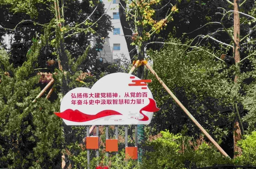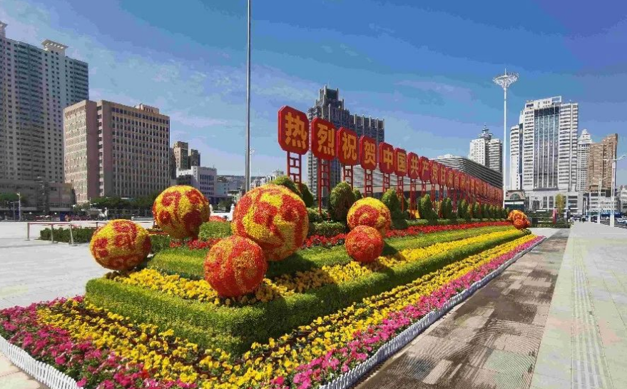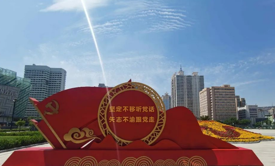 在蘭州東方紅廣場,寫著“堅(jiān)定不移聽黨話、矢志不渝跟黨走”等內(nèi)容的景觀雕塑格外引人注目。各色花卉搭建起一座主題花臺,花臺兩旁擺放著鐵樹、海棠、矮牽牛和孔雀草等,以紅、黃等明快的色系為主,營造出喜慶、祥和的氛圍。(來源:新甘肅)