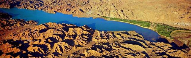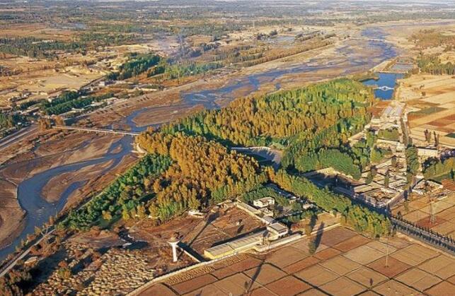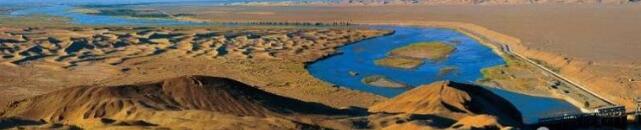▼ 攝于2012年。祁連山水系重要的河流一一黑河,流經(jīng)酒泉市金塔縣后形成了一個(gè)環(huán)流。