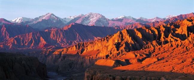 ▼攝于2005年。酒泉紅水河大峽谷,雪山背后就是祁連山主峰。
