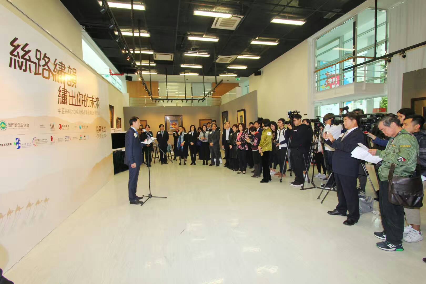 1月4日中午,由澳門繁榮促進(jìn)會主辦,澳門基金會贊助,中央人民政府駐澳門特別行政區(qū)聯(lián)絡(luò)辦公室、澳門教育暨青年局、甘肅省商務(wù)廳支持,澳門會展產(chǎn)業(yè)聯(lián)合商會協(xié)辦,澳門盛世順廣告有限公司、甘肅華源文化產(chǎn)業(yè)集團(tuán)承辦的“絲路繡韻”中國絲綢之路藝術(shù)精品展粵港澳巡展在澳門教科文中心隆重開展。