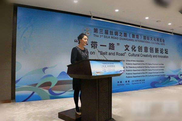 28日,由中國作家協(xié)會、甘肅省委宣傳部主辦的第三屆敦煌文博會“一帶一路”文化創(chuàng)意創(chuàng)新論壇在敦煌國際會展中心舉行。本次論壇的主題是:新時代 新絲路 新文創(chuàng) 新發(fā)展。論壇邀請了國內(nèi)外政、商、學(xué)、藝、媒各界嘉賓80余人參加,就“一帶一路”文化創(chuàng)意產(chǎn)業(yè)的創(chuàng)新發(fā)展與務(wù)實合作,與會嘉賓就推動“一帶一路”沿線國家、地區(qū)加強文化創(chuàng)意創(chuàng)新務(wù)實合作,深入開展研討交流,本次論壇由中國作家協(xié)會、中共甘肅省委宣傳部主辦,俄羅斯列賓美術(shù)學(xué)院參與,中共甘肅省委宣傳部、中共酒泉市委宣傳部、中共敦煌市委宣傳部承辦。