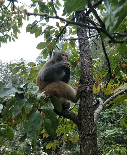 □這只猴子的確可愛,很有網(wǎng)紅的范,吃柿子的照片,堪稱靚照!