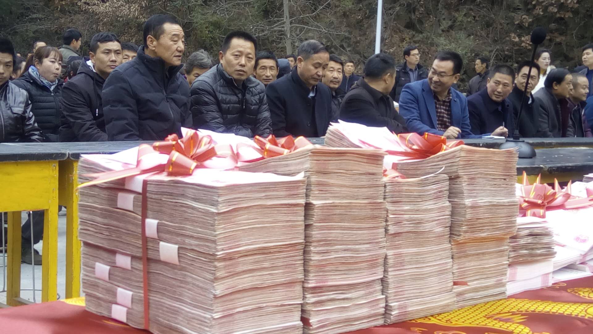 迷壩鄉(xiāng)是康縣的深度貧困鄉(xiāng)鎮(zhèn),長期以來,在產(chǎn)業(yè)發(fā)展方面基礎(chǔ)薄弱、規(guī)模單一。近年來,迷壩鄉(xiāng)立足實際,形成了黨支部引領(lǐng),通過土地入股、勞力入股、產(chǎn)業(yè)獎補資金入股等三變模式,做強了食用菌種植和中蜂養(yǎng)殖等特色產(chǎn)業(yè),有效增加了農(nóng)民收入,帶動了整流域整片穩(wěn)定脫貧,全鄉(xiāng)貧困發(fā)生率從建檔立卡的47%下降到8%,而本次分紅的資金就是鄉(xiāng)上發(fā)展食用菌種植及中蜂養(yǎng)殖的收益,共計47.8萬元,全部發(fā)放到村民手中。