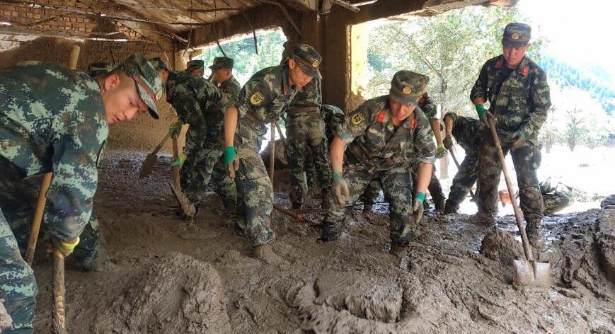 8月6日,武警甘南支隊執(zhí)勤大隊迭部中隊官兵堅守在次哇村,清理淤泥、搜救轉(zhuǎn)移群眾,搬運救災物資。據(jù)統(tǒng)計,武警官兵累計排查受災戶數(shù)24戶,搭建帳篷3頂,沿河道搜索20余公里,清理淤泥100余方,為群眾尋回財物20余件,協(xié)助專業(yè)救援隊伍挖出遇難者1名。