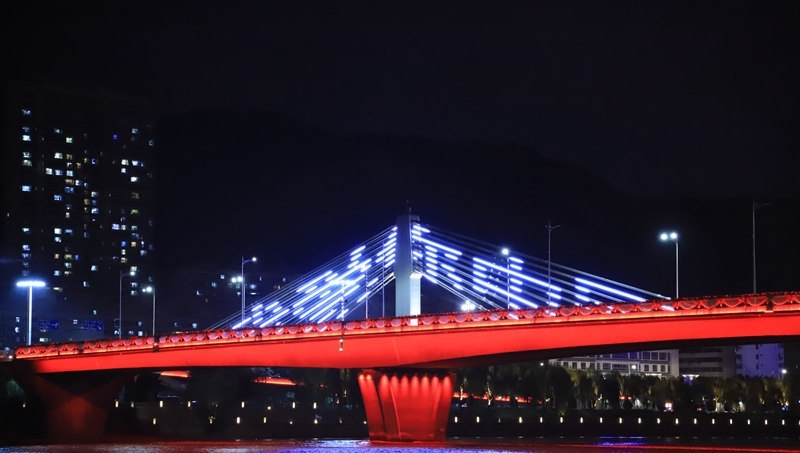 黃河之水天上來,奔流到東不復回。甘肅省會蘭州是黃河穿城而過的城市。黃河岸邊的燈光秀如影隨形,裝扮著美麗的金城,照亮浩浩湯湯的大河?!翱矗S河亮了!”“蘭州的橋可是真美!”向祖國表白的話語很讓人感動,為蘭州驕傲,向祖國表白!