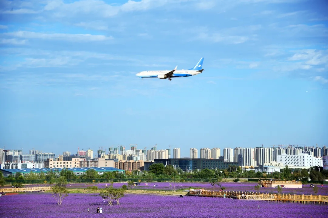 如今荒灘變花海,“機(jī)窗風(fēng)景”讓眼睛先“旅行”,成為新區(qū)又一處旅游景點。