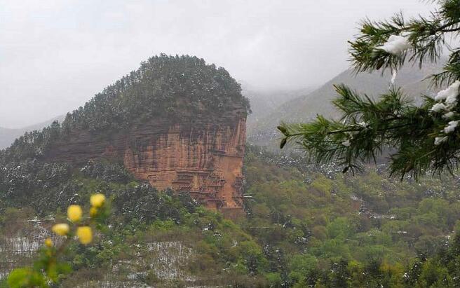 雪落在伏羲廟的屋脊上
