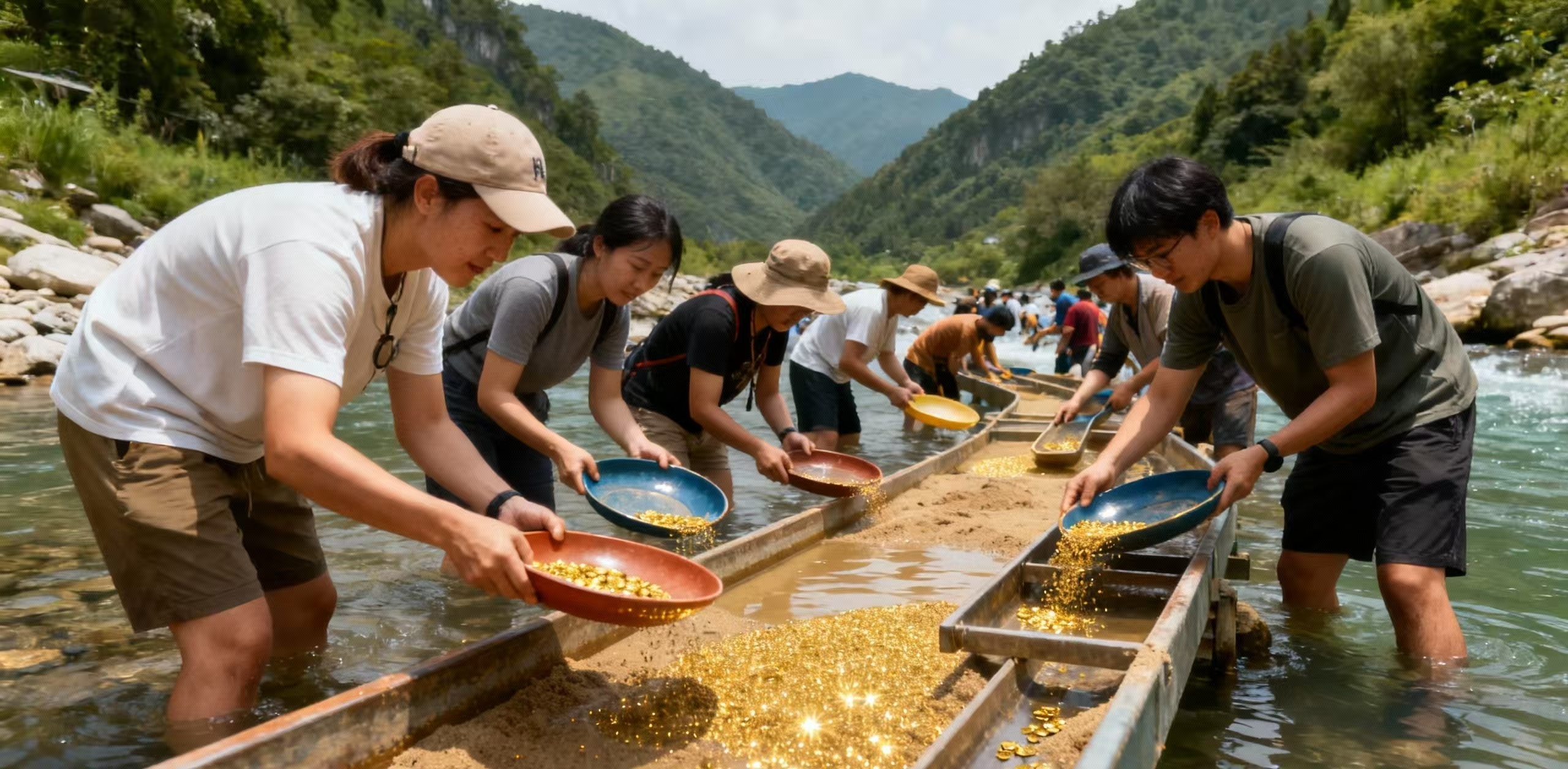 近期,甘肅隴南康縣燕子河河道上演了一場“現(xiàn)代淘金熱”。數(shù)十人冒著凌晨4℃的嚴(yán)寒,頭戴照明燈,手持臉盆篩子在河水中瘋狂淘洗砂金,網(wǎng)傳“有人一盆就出了5克多”。這一現(xiàn)象雖被當(dāng)?shù)卣鞔_禁止,但卻引發(fā)我們思考:這種民間淘金熱情,能否轉(zhuǎn)化為合法的旅游體驗(yàn)項(xiàng)目,讓“綠水青山”真正變成“金山銀山”?