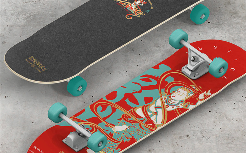 作為敦煌傳統(tǒng)文化的傳承代表,敦煌博物館自覺(jué)地將敦煌元素與流行文化相結(jié)合,使敦煌傳統(tǒng)文化又一次以嶄新的面貌進(jìn)入大眾視野,形成別致的敦煌國(guó)潮文化。兩款為流行小生王一博私人定制的滑板,是由敦煌壁畫與極限運(yùn)動(dòng)相結(jié)合而設(shè)計(jì)的,不僅讓傳統(tǒng)文化玩出了新花樣,也讓敦煌博物館以高達(dá)四億的閱讀量登上熱搜,掀起了一股敦煌文化消費(fèi)的熱潮。