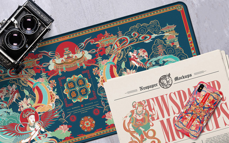以大眾化的眼光欣賞千禧年的藝術(shù),是敦煌博物館文創(chuàng) IP的品牌訴求,也是敦煌文化元素成為當(dāng)前最受關(guān)注的文化創(chuàng)意之一的根源。敦煌博物館將古絲路的石窟、壁畫、飛天等元素運(yùn)用到各種現(xiàn)代生活用品中,借用波普藝術(shù)的表現(xiàn)手法,還原千年前的彩色壁畫,誕生了古典藝術(shù)與街風(fēng)交融的再創(chuàng)輝煌系列,將古典藝術(shù)與現(xiàn)代前衛(wèi)極限運(yùn)動(dòng)的創(chuàng)意與飛天與伎樂(lè)天的組合,尋求心靈慰藉渴望心靈解脫的佛系系列,將傳統(tǒng)圖案與現(xiàn)代審美融為一體的經(jīng)典藝術(shù)與現(xiàn)代審美融為一體的正中佛系青年的“萌點(diǎn)”。
