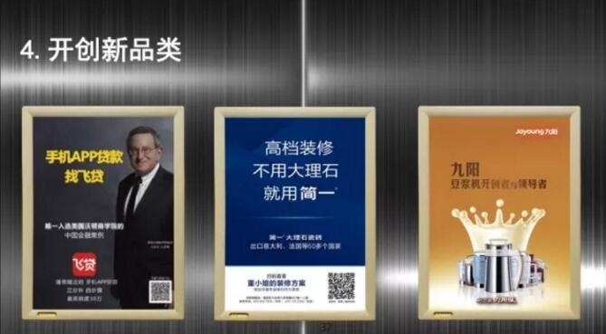 第三個是領導品牌,就是最簡單的「全國銷量遙遙領先」、「中國每十罐涼茶七罐加多寶」、「中國每十臺大吸力油煙機,六臺是老板」。