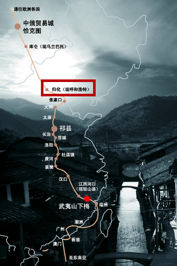不同時(shí)期,萬里茶道的線路不同(紅框處為呼和浩特)