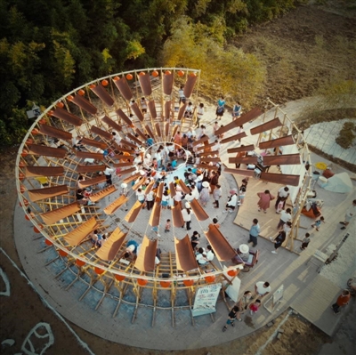 由山東建筑大學(xué)和中國文化大學(xué)團(tuán)隊(duì)設(shè)計(jì)建造的“爬梯劇場”,則喊出“鄉(xiāng)村生活喚醒師”“用爬梯,開Party(聚會(huì))”的口號,試圖讓更多的村民融入到集體活動(dòng)中,激發(fā)鄉(xiāng)村活力。