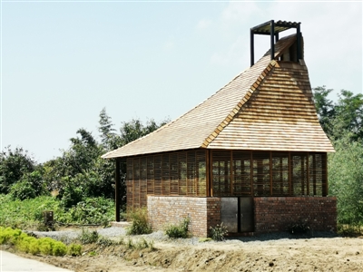“第一次有種走進(jìn)垃圾站就不想離開的感覺。”張曉鵬說。這座讓人流連忘返的垃圾回收站是由北京林業(yè)大學(xué)和日本千葉大學(xué)設(shè)計(jì)建造的一座梨園小屋。
