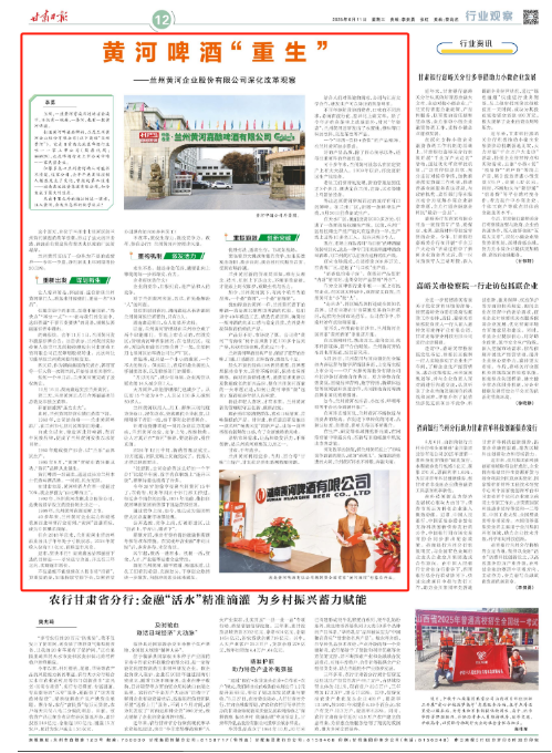 編者按:這是刊登在《甘肅日?qǐng)?bào)》12版「行業(yè)觀察」的一篇新聞特寫(xiě),題目為“黃河啤酒“重生”——蘭州黃河企業(yè)股份有限公司深化改革觀察”。