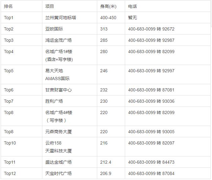 蘭州目前在售、待售的200+超高建筑, 以下是19個(gè)200+超高建筑 。