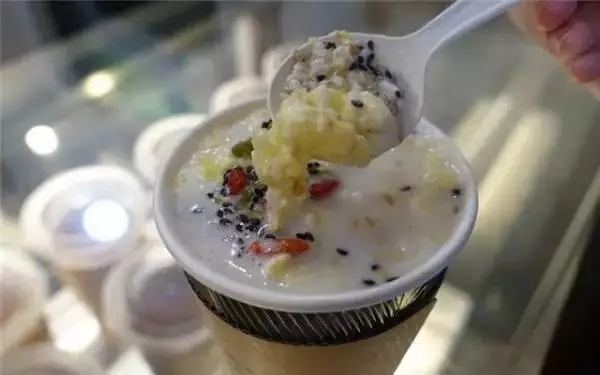 醪蛋奶的滋味,可不是一般能輕易言傳的。這是一種味道和另一種味道相遇后,激發(fā)出的妙不可言的味道,花花哨哨的蛋花、芝麻、萄干、銀耳、花生、枸杞等八寶之類,在這里只是悅目愉口的配角。并不是所有的大胡子,在所有的時(shí)間里,都能烹調(diào)出那種圓滿的味道,醪糟要發(fā)的酸甜比恰到好處,濃馥幽郁,香諧味正,澄清透亮,牛奶也要純的不得攙水太多,色澤乳白,質(zhì)地細(xì)膩,鮮味醇厚,一句話就是物雖普通,但一定要貨真價(jià)實(shí)。