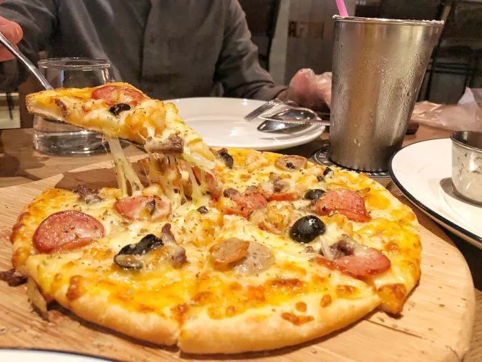 都說不能拉絲的披薩都不是好披薩,店里的招牌披薩芝士放的很足,炒雞大方,拉絲的感覺很美妙。(作者:洋鍋鍋)