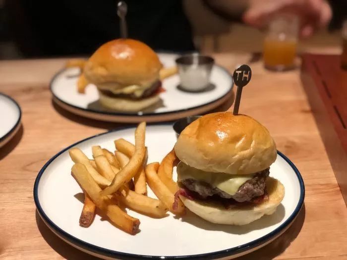 牛肉餅每天都是現(xiàn)做的,建議是選5-7分熟,肉質(zhì)緊實多汁,配上車達(dá)芝士和培根片,咬一口滿嘴肉汁,非常有層次感。