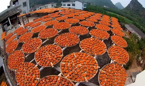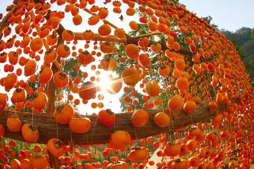 在這里,看月柿如海,聞山果飄香,過農(nóng)家生活,享山野情趣。這里家家戶戶都種著柿子樹,紅紅的柿子,配上青灰色的老房子,別有雅致與韻味。院場里,空地上,還有自家屋頂,幾乎你能想到的所有空間都被柿子所占據(jù),仿佛一幅巨大的寫實油畫。村民們笑足顏開,盡情享受豐收的喜悅。自然、盈實,透著一種喜氣,是山鄉(xiāng)特有的秋韻。