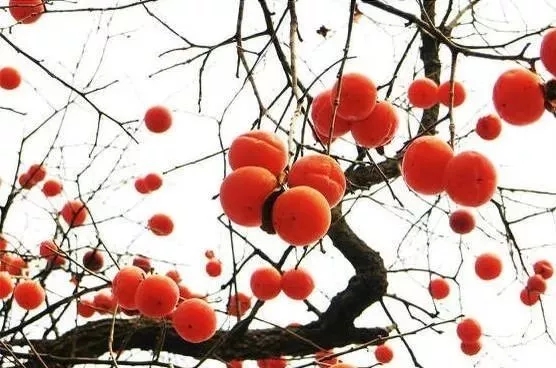 若是遇上一場初雪,柿樹的枝條上,綴滿了雪,唯有那一顆顆的柿子,依然干凈明亮,只是色彩有了稍微的變化。