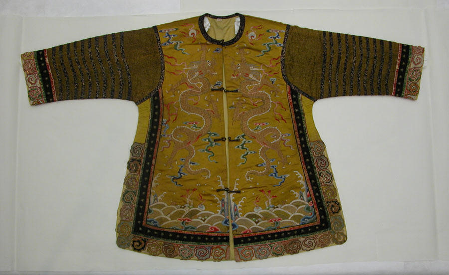 清 黃緞地彩繡云龍紋甲