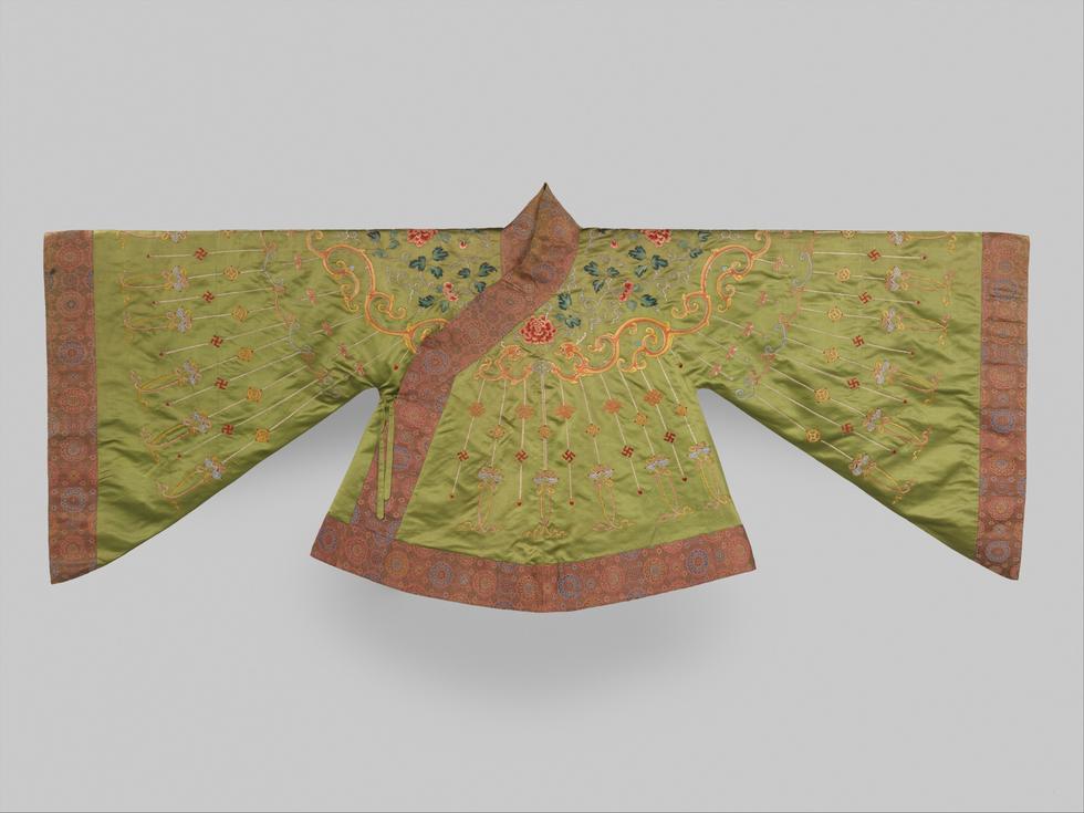 清 緞地彩繡葡萄紋羅漢衣