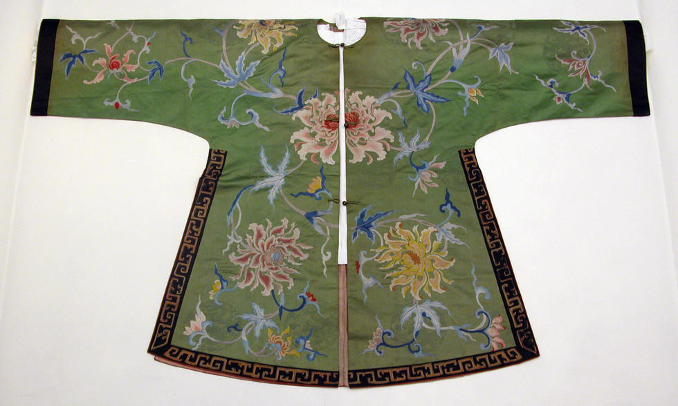 清 綠緞彩繡采蓮衣