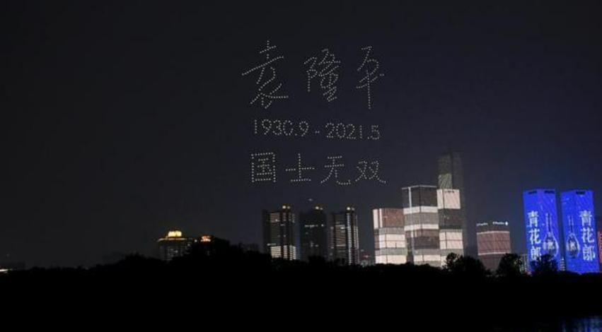 5月25日,無人機(jī)拼出紀(jì)念袁隆平的字樣。當(dāng)晚,湖南長(zhǎng)沙上空數(shù)百架無人機(jī)編隊(duì)拼出多種圖案,悼念“雜交水稻之父”袁隆平。