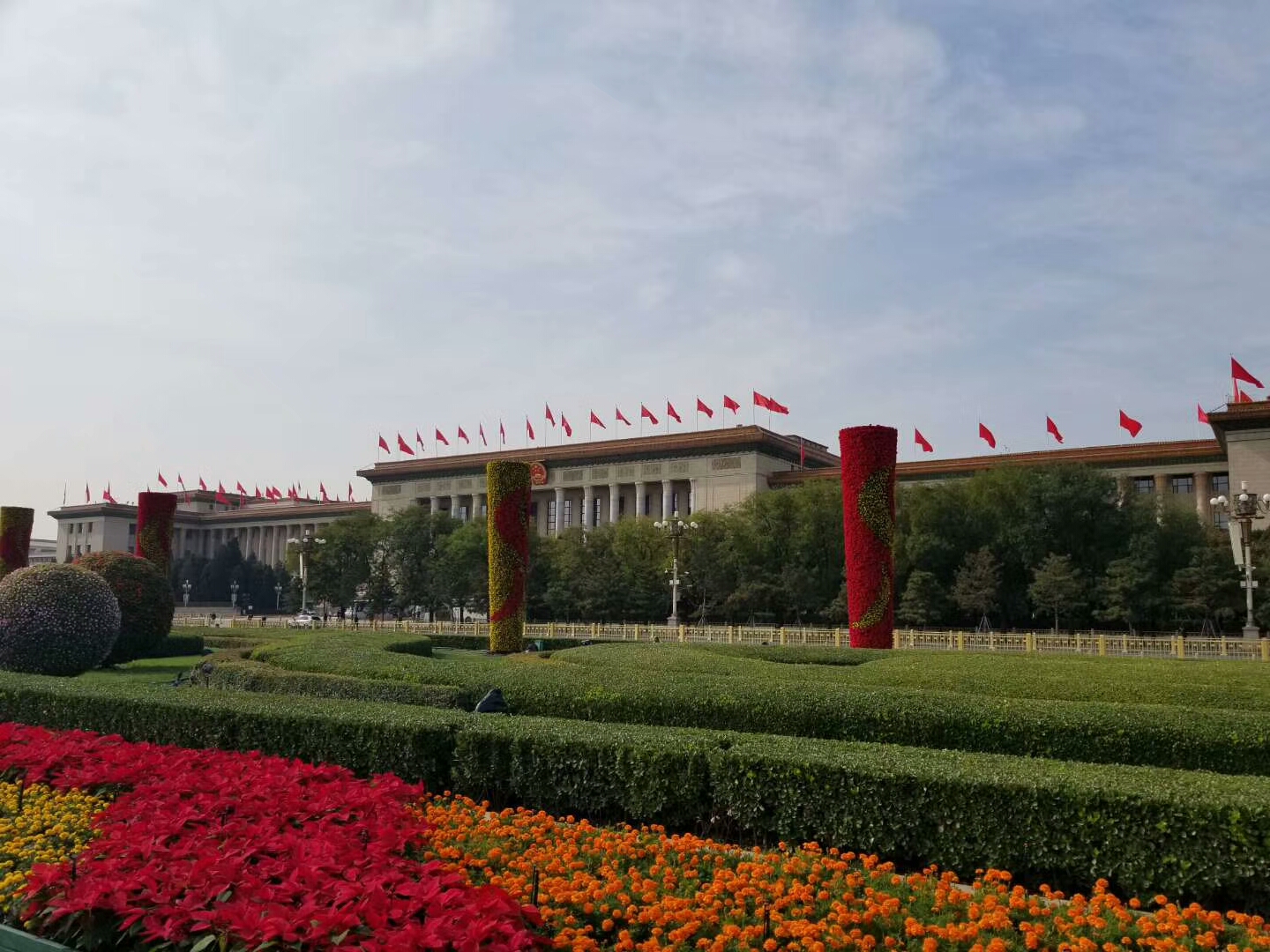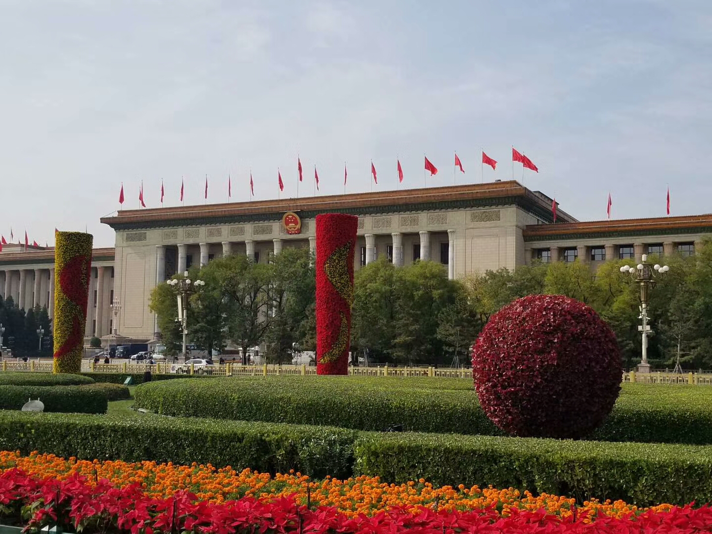人民大會堂前花團錦簇。(攝影/崔永紅)
