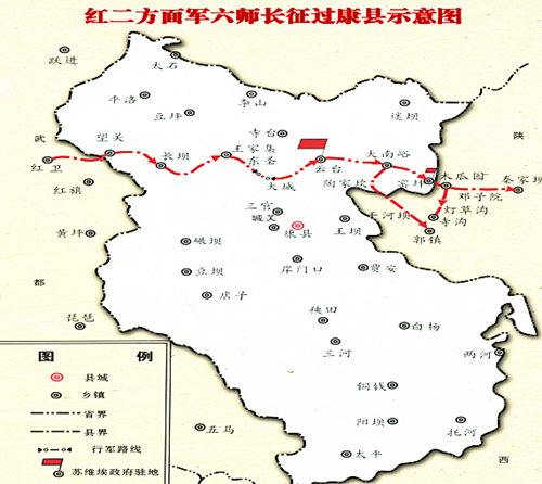 1936年9月,紅二方面軍長征途經(jīng)隴南發(fā)動成徽兩康戰(zhàn)役,在隴南創(chuàng)建革命根據(jù)地,第六師攻占康縣后打土豪、分田地,建立紅色政權(quán),播下了熊熊的革命火種。隴南根據(jù)地是土地革命戰(zhàn)爭時期與抗日戰(zhàn)爭時期根據(jù)地的分水嶺和重要過渡,為陜北革命根據(jù)地的建立積累了寶貴的豐富經(jīng)驗。