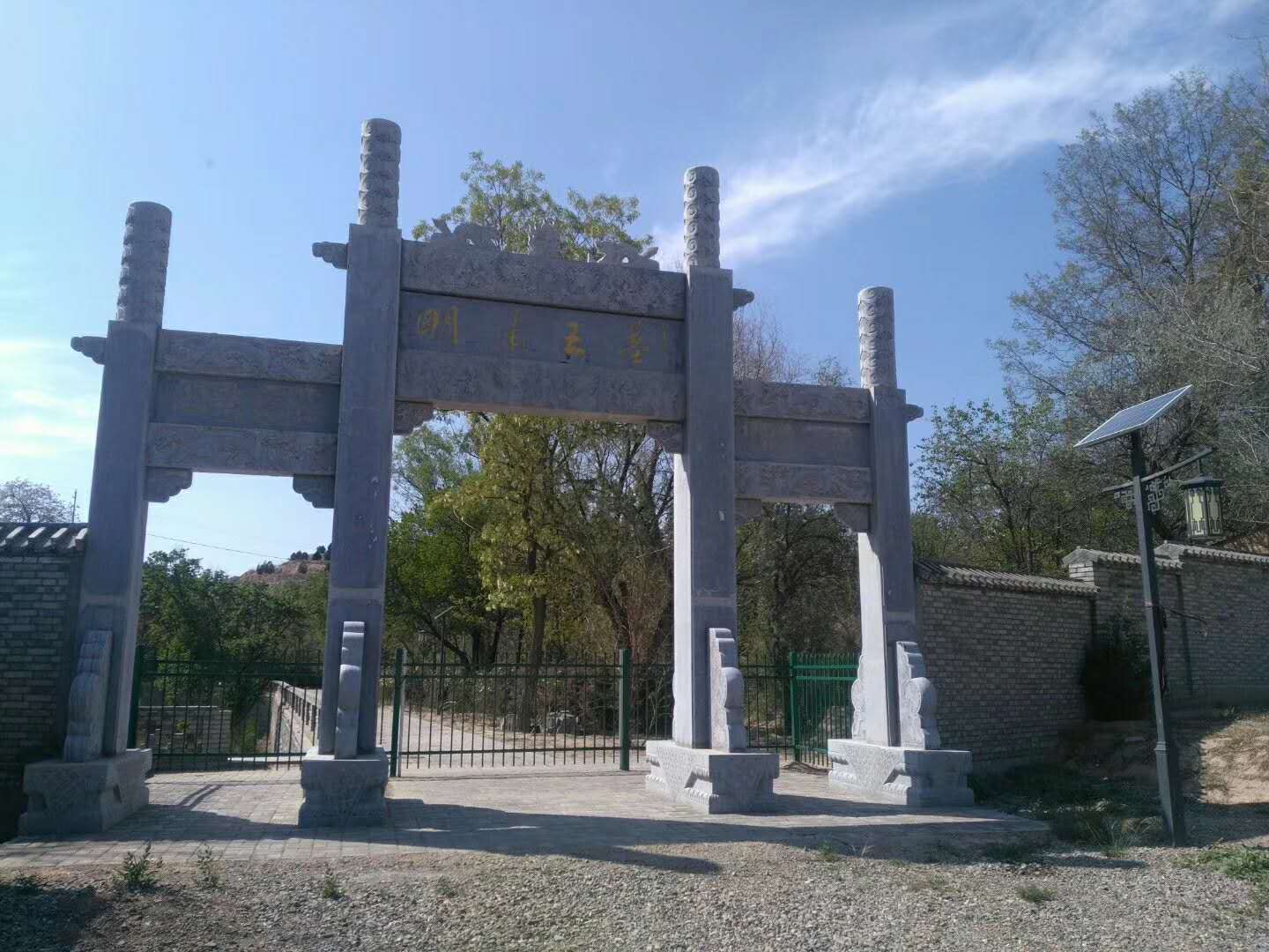 今天,趁著還在休五一的小長假,一家人相約,由兒子開車,專門前往明吃午飯,幸好山莊的牡丹開的正艷,拍了幾張好照片。13時許,天轉(zhuǎn)晴,驅(qū)車問明肅王墓而去。穿過定遠(yuǎn)鎮(zhèn)老街道向北,經(jīng)過張老營、蔣家營、駱駝巷,繞過酒鋼公司榆中鋼廠,再沿東金公路(東崗鎮(zhèn)至金崖)東行,一路上,多處修路,路面坑洼不平,但還算暢通。到達(dá)黃家莊時,天完全放晴,天空碧藍(lán)碧藍(lán)的,沒有一絲云,榆中鋼廠似乎在停產(chǎn),沒有什么污染。村頭高大的古槐樹,已完全展開了樹葉,亭亭如蓋。經(jīng)詢問村民,找到了前往明肅王墓的路。