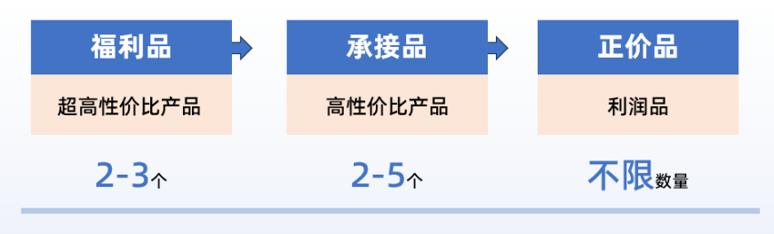 不止是直播間,產(chǎn)品矩陣、課程設(shè)計(jì)等都會(huì)通過福利+承接+正品的結(jié)構(gòu)來促進(jìn)刺激成交。
