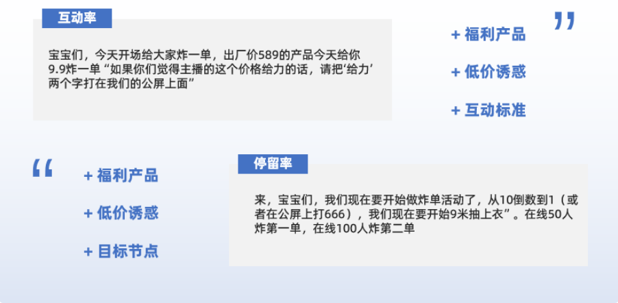 常見的營銷活動(dòng)往往通過低價(jià)、粉絲福利、抽獎(jiǎng)等形式展現(xiàn),最終目的依舊是增加直播間的互動(dòng)、停留和轉(zhuǎn)粉。
