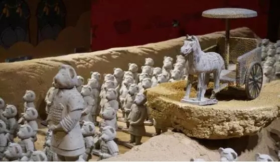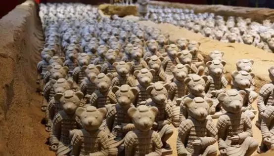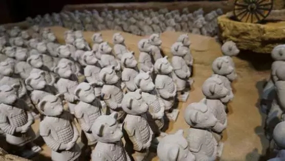 2016年5月15日,500多只手工捏制的“泰迪熊兵馬俑”亮相無(wú)錫“泰迪明星秀”展館,整齊排列“還原”兵馬俑恢弘大氣場(chǎng)景之際,更添幾分俏皮可愛(ài)。