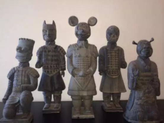 另外,被譽(yù)為“世界第八大奇跡”的兵馬俑是重要文化遺產(chǎn),甚至還成為美國(guó)雕塑家Lizabeth Eva Rossof的靈感來(lái)源。她將擁有嚴(yán)肅表情兵馬俑的頭部以下保留,并將頭部換成有趣的電影或是卡通人物的頭像。