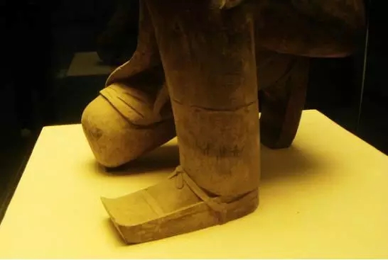 這位步兵的鞋子是用繩子從腳掌再栓一道綁在腳上(上圖兵馬俑②)。