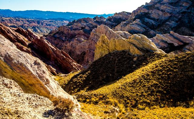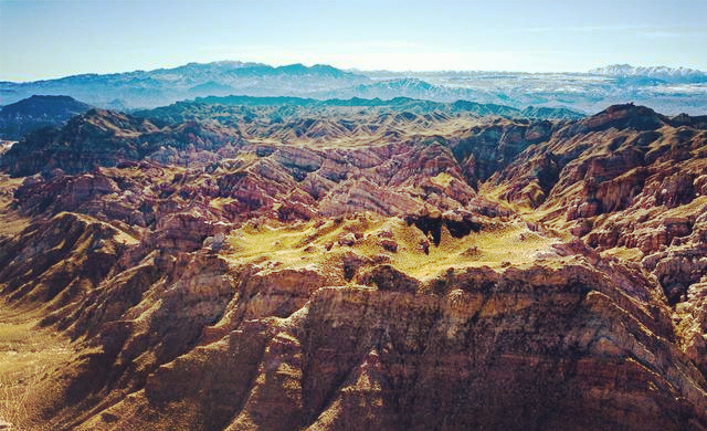 驅(qū)車首先來到水星谷的核心地帶白沙溝。氣喘吁吁地徒步爬上峽谷上方,一眼望去,全部是這種奇峰峻嶺,怪石嶙峋的地貌。據(jù)介紹,這些獨特的地貌至少形成于白堊紀早期的地殼運動,距今已有一億多年。