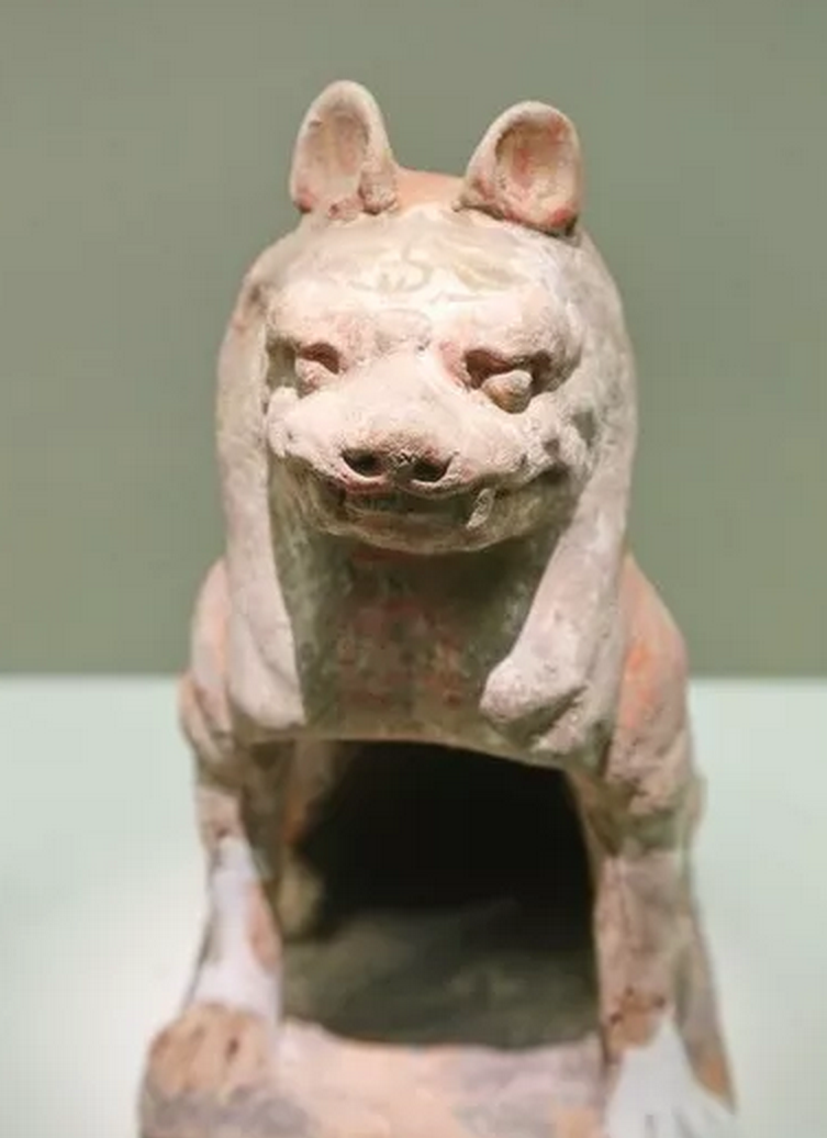 唐代鎮(zhèn)墓陶狗。外露的尖牙、微凸的眼睛,彰顯著鎮(zhèn)墓狗的神圣威嚴(yán)。由紅色陶土制成,身上裝飾有花紋。怒目圓瞪,鋒利的尖牙,兇相畢露!人家可是用來鎮(zhèn)墓的!不兇惡的點兒怎么嚇退鬼怪,辟邪??!