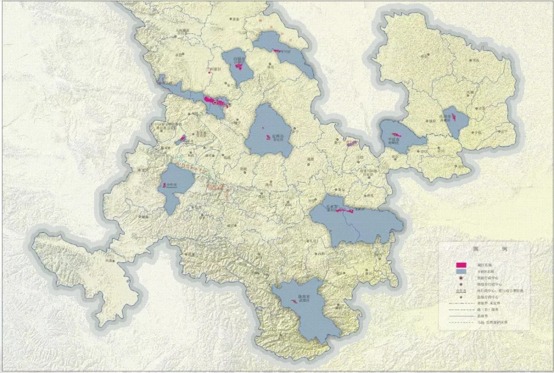 圖3甘肅省東半部地級城市方位示意圖