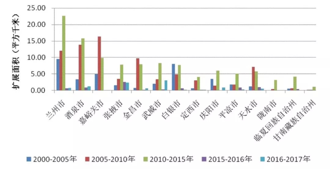 圖4 2000-2017年甘肅省地級城市擴展